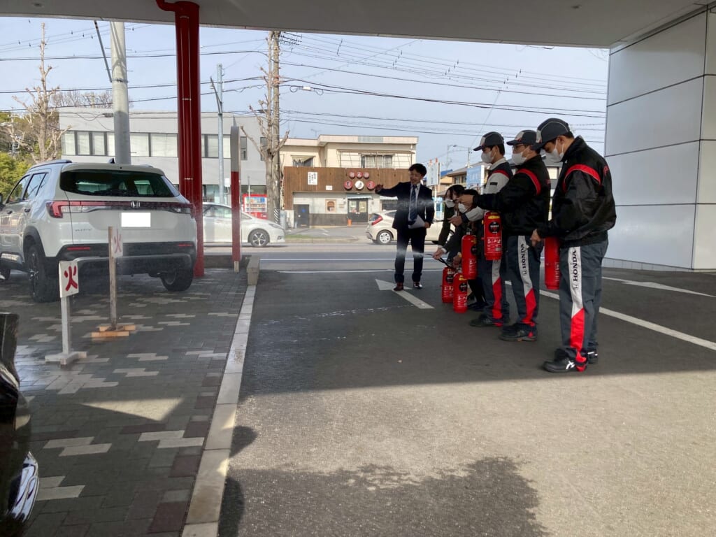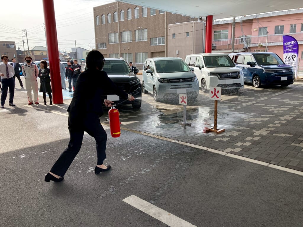 最後にお店の駐車場にて消防署から消火器を借り消火器訓練をいたしました。
