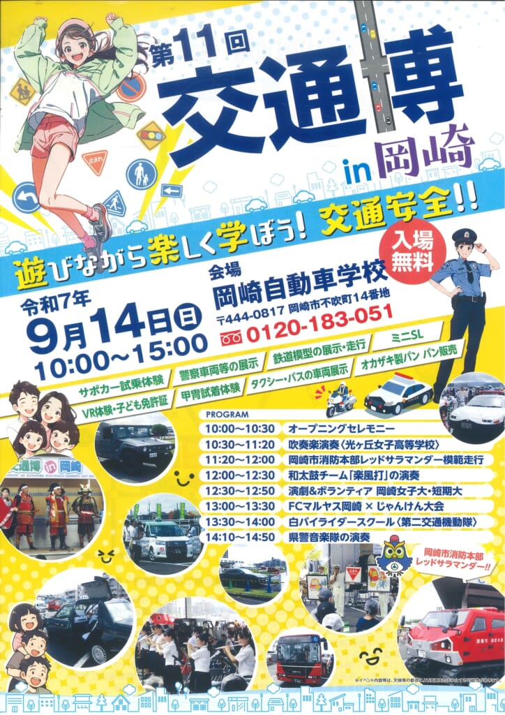 今年で第11回目を迎える交通博in岡崎が9月14日(日)に岡崎自動車学校で開催されます。